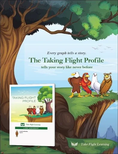 The Taking Flight with DISC assessment is a refreshing, reimagined approach to traditional personality styles reports. It uses 4 birds to relate to the 4 personality styles, which adds colorful energy and results in people remembering the styles like never before.